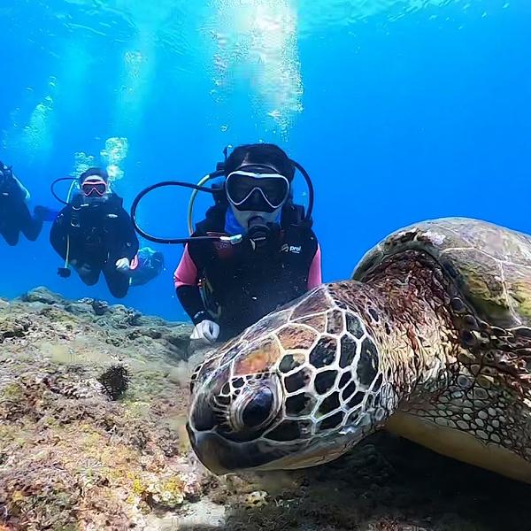 小琉球 島氮潛水 海龜進食中